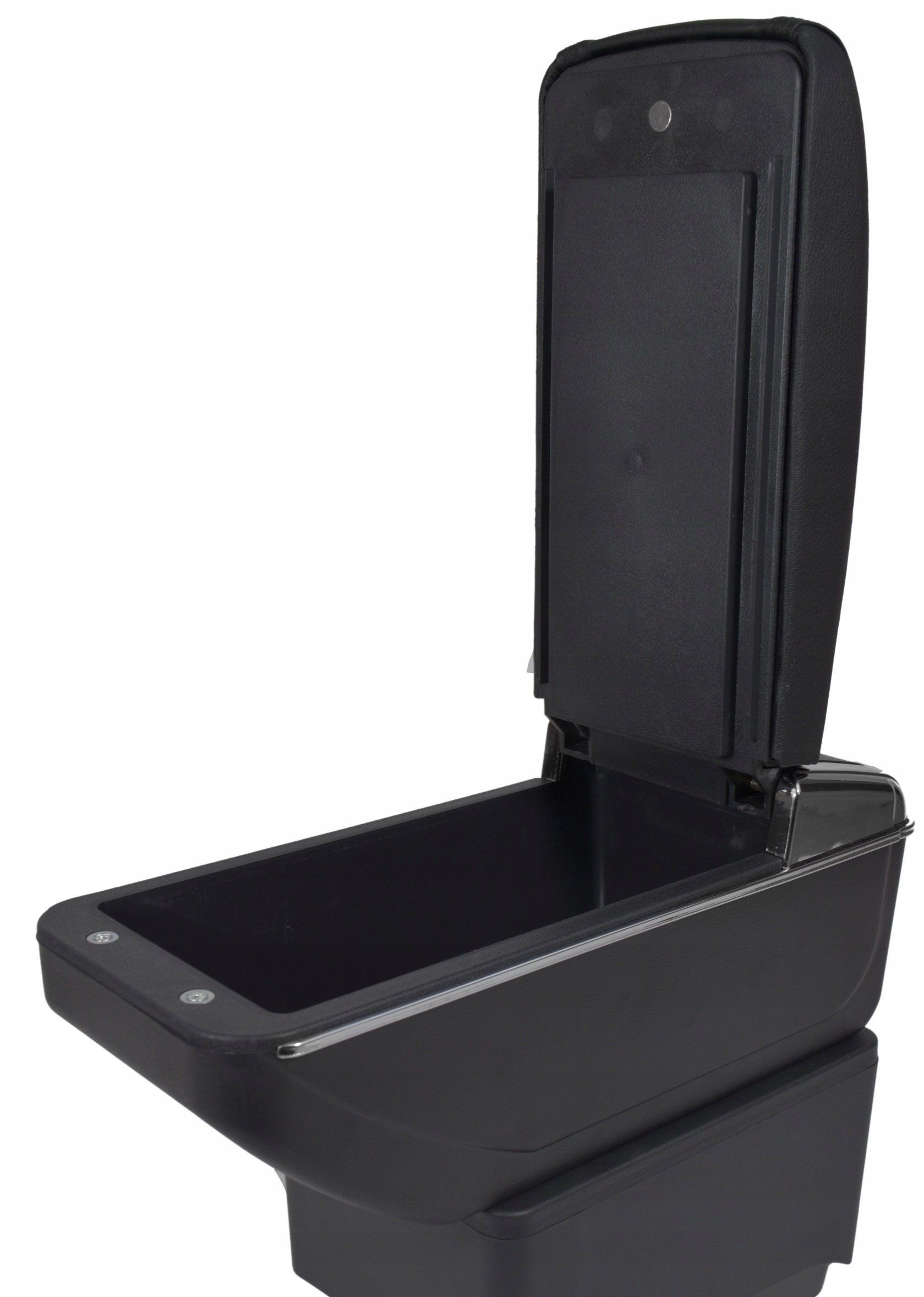 W środku podłokietnika znajdziemy dwa schowki: jeden na drobne przedmioty jak monety, żetony do wózków itp., natomiast drugi, pod pierwszym jest głębszy i spokojnie zmieścimy tam np. portfel.
