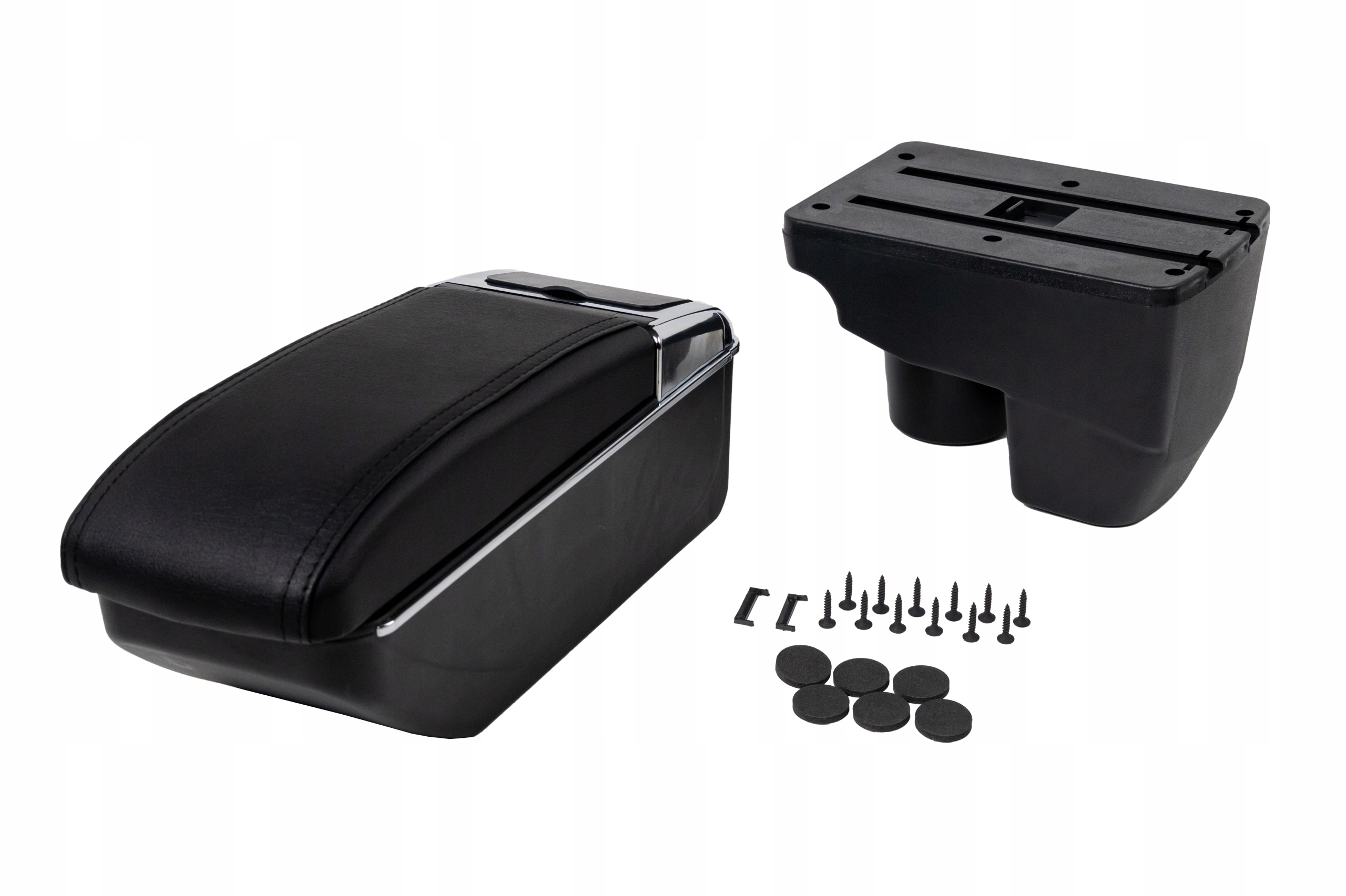 • pianki rozporowe (które należy nakleić na każdym z boków bazy w celu zabezpieczenia wnętrza samochodu oraz zapobieganiu przesuwania się podłokietnika podczas użytkowania. Po ich naklejeniu, podłokietnik będzie nieruchomo umiejscowiony w Państwa tunelu środkowym),