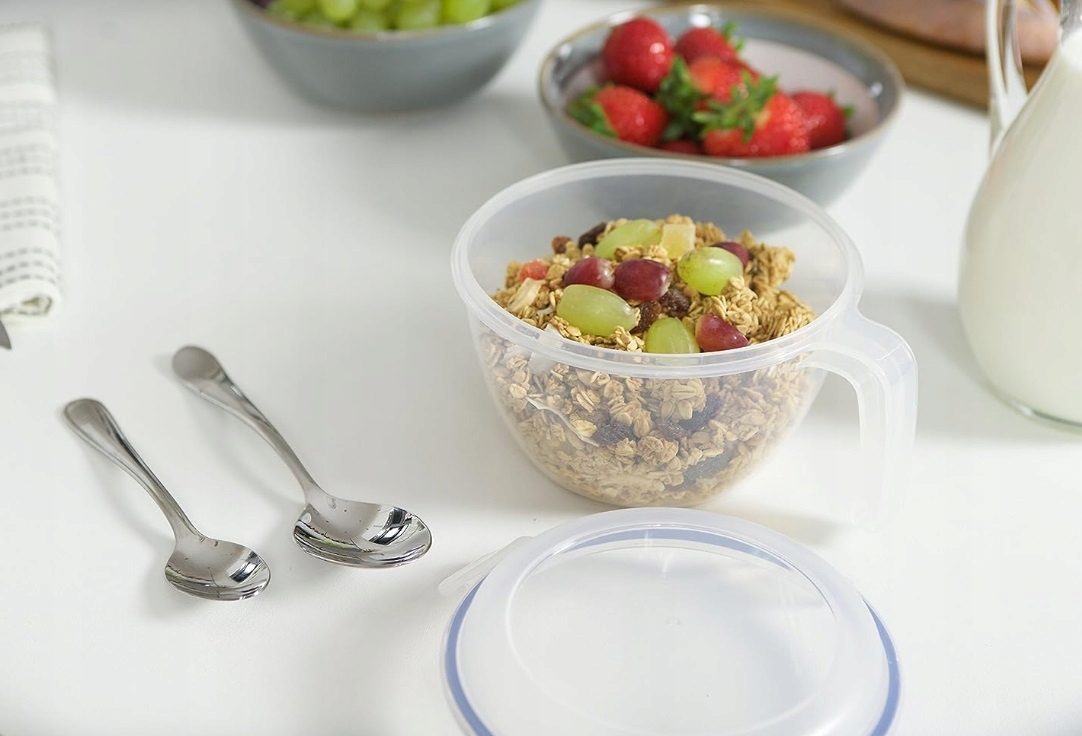 Świetnie nadaje się na przechowywanie i przenoszenie gotowych śniadań w postaci np. owsianek.