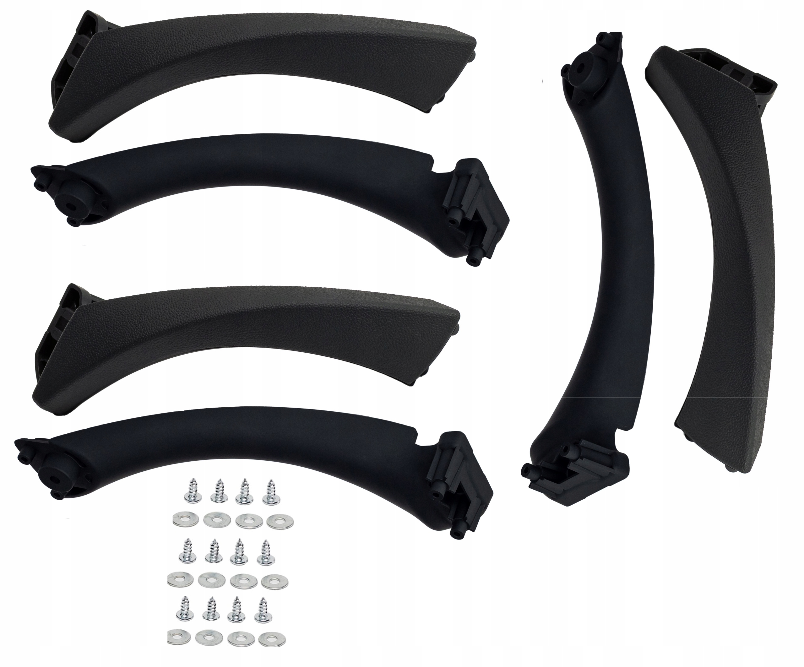 Ofertowany przedmiot: ZESTAW wszystkich (oprócz drzwi kierowcy) uchwytów drzwi, zaślepek wewnętrznych oraz komplet śrub montażowych do BMW 3 (E90, E91, E92, E93)